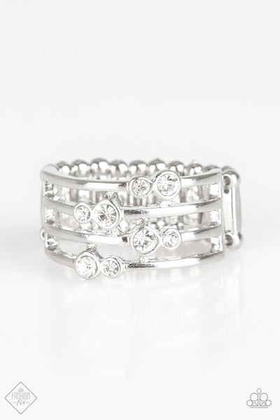 Four shiny silver bands are sprinkled with tiny glittery white rhinestones as they arc gracefully across the finger, creating an irresistibly elegant accent piece. Features a stretchy band for a flexible fit.